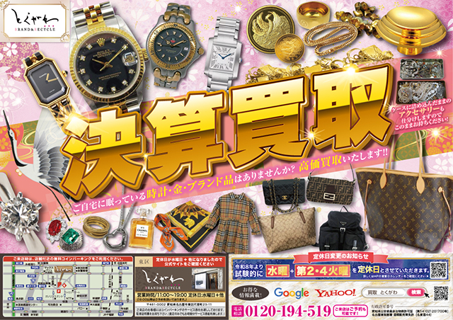 リサイクルショップ 名古屋のブランド品、金・プラチナ買取 ブランド品とくがわホームぺージ